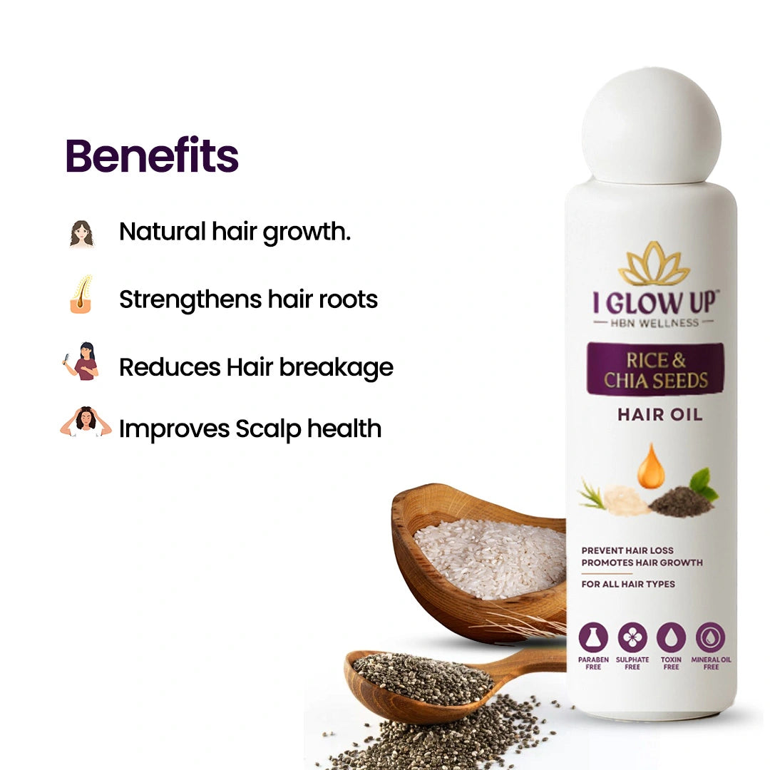 I GLOW UP Rice & Chia Seed Hair Oil | Best Hair Oil for Hair Fall